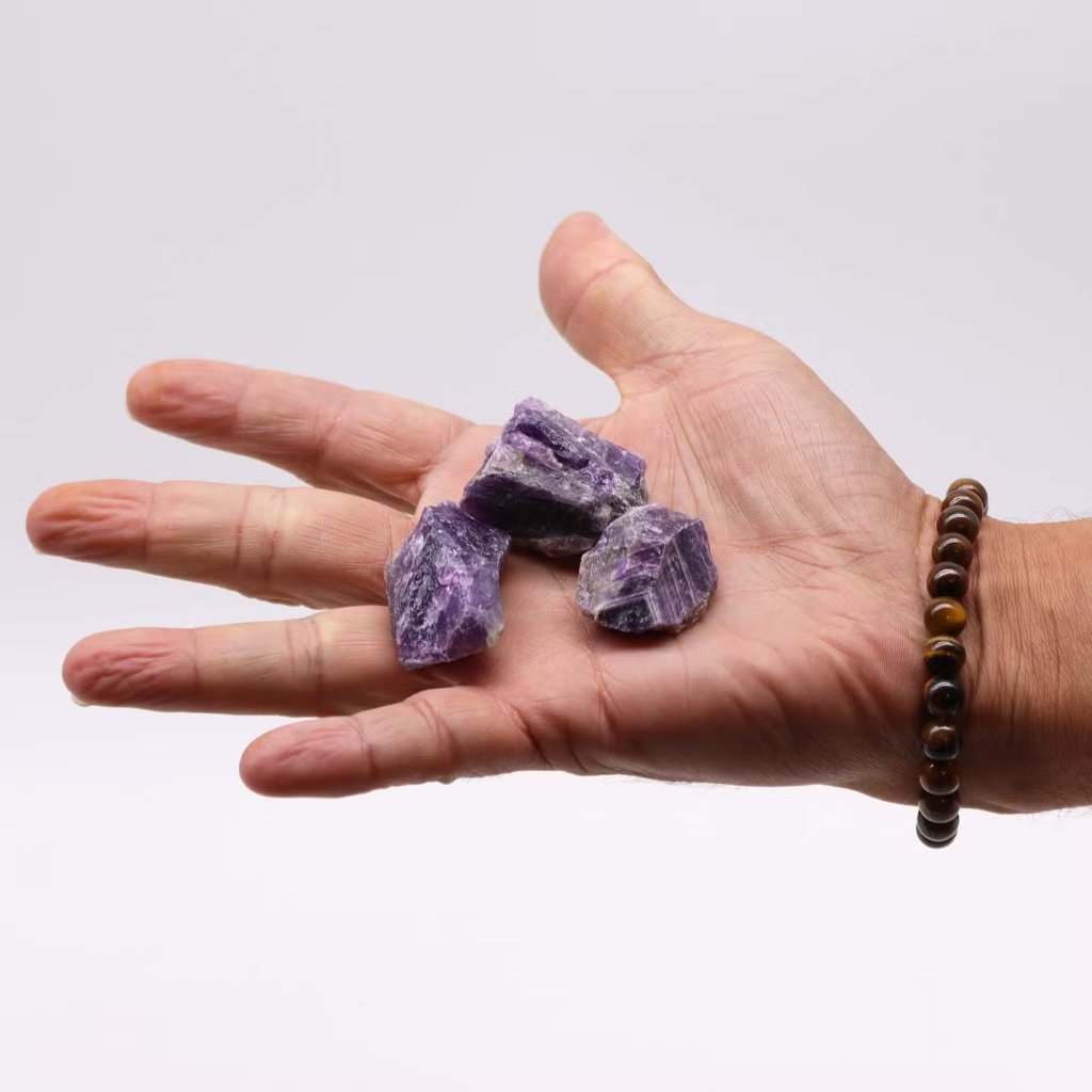 Každý set obsahuje cca 500 g přírodních krystalů (20–30 kamenů o velikosti 3–5 cm) a dvě pečlivě vybrané směsi esenciálních olejů, které ladí s energií daného minerálu.