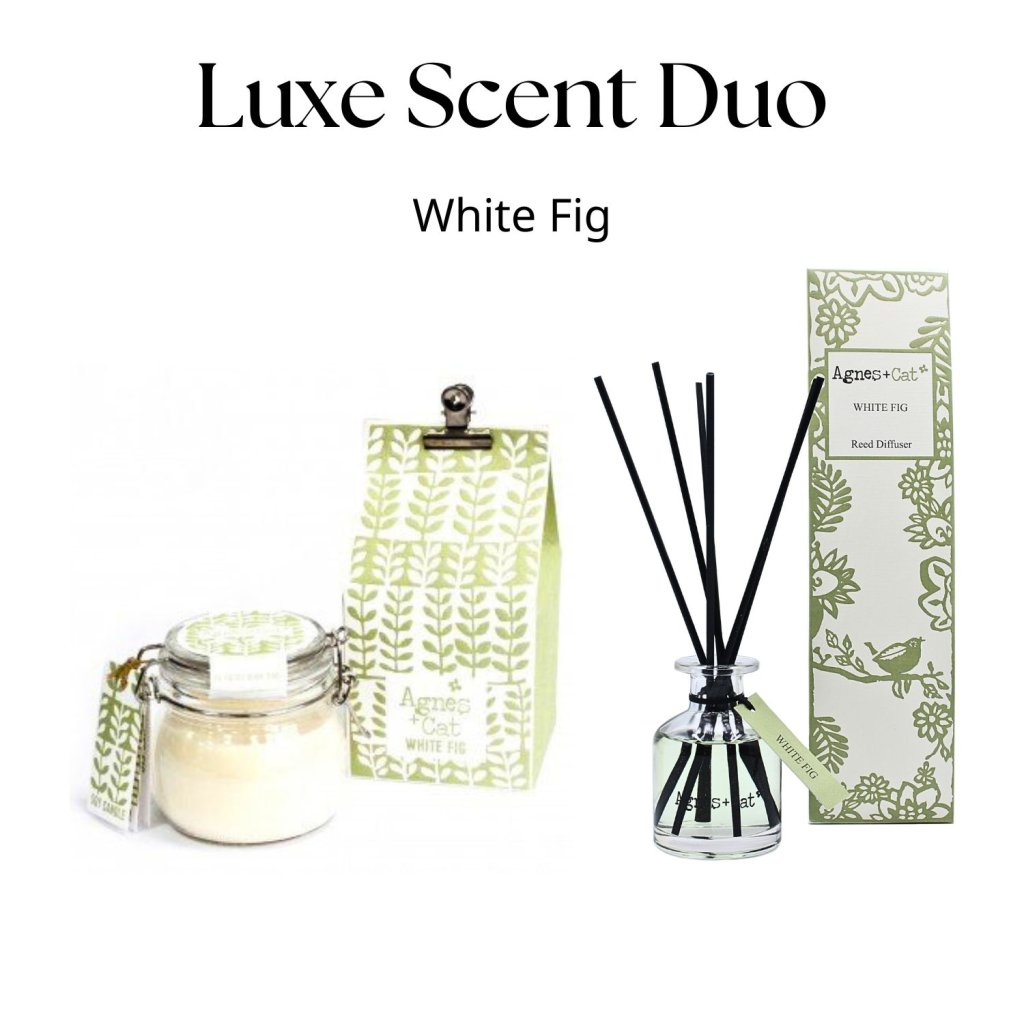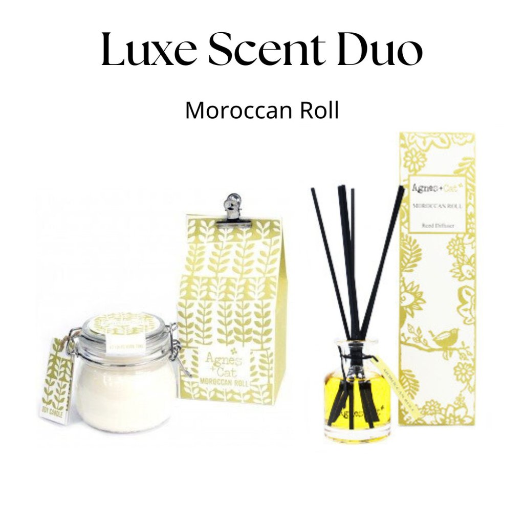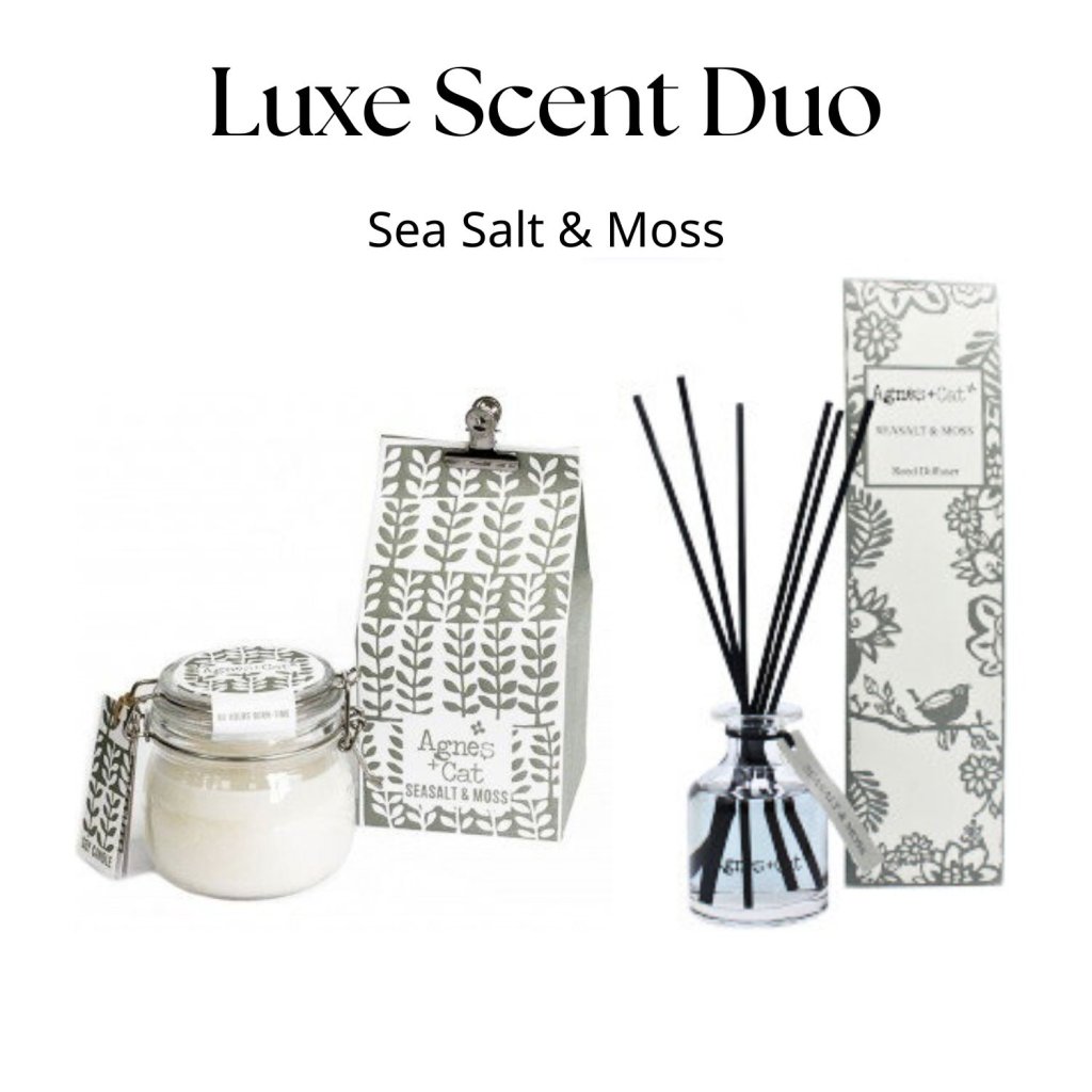 Proměň svůj domov v oázu pohody. Luxe Scent Duo je elegantní set velké sójové svíčky a aroma difuzéru, které společně vytvářejí útulnou a stylovou atmosféru. Každý set je laděn do oblíbených vůní – od svěžího mořského vánku Sea Salt & Moss přes hřejivý Moroccan Roll až po jemnou eleganci White Fig.