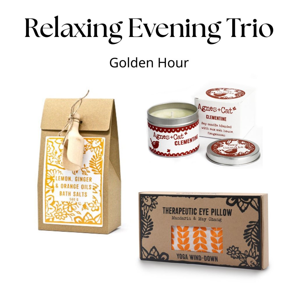 🍊 Golden Hour: Lemon, Ginger, Orange koupelová sůl + Clementine svíčka + Yoga Wind-Down polštářek: Hřejivý soumrak v barvách citrusů – jemná mandarinka a zázvor ti pomohou zpomalit a naladit se na večer.