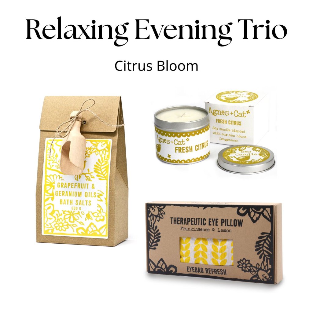 🍋 Citrus Bloom: Grapefruit & Geranium koupelová sůl + Fresh Citrus svíčka + Refresh polštářek: Osvěžující pauza plná slunce – kombinace citrusů a geránia tě uvolní a zároveň povzbudí.