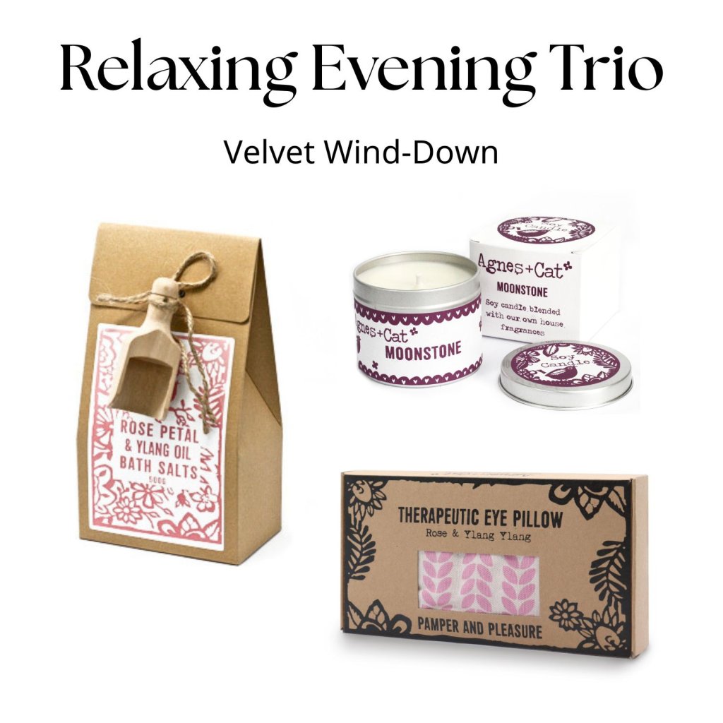 🌸 Velvet Wind-Down: Ylang & Rose koupelová sůl + Moonstone svíčka + Pamper & Pleasure polštářek: Jemný, smyslný večer s nádechem luxusu – květinové tóny a růžová péče tě naladí na odpočinek i sebelásku.