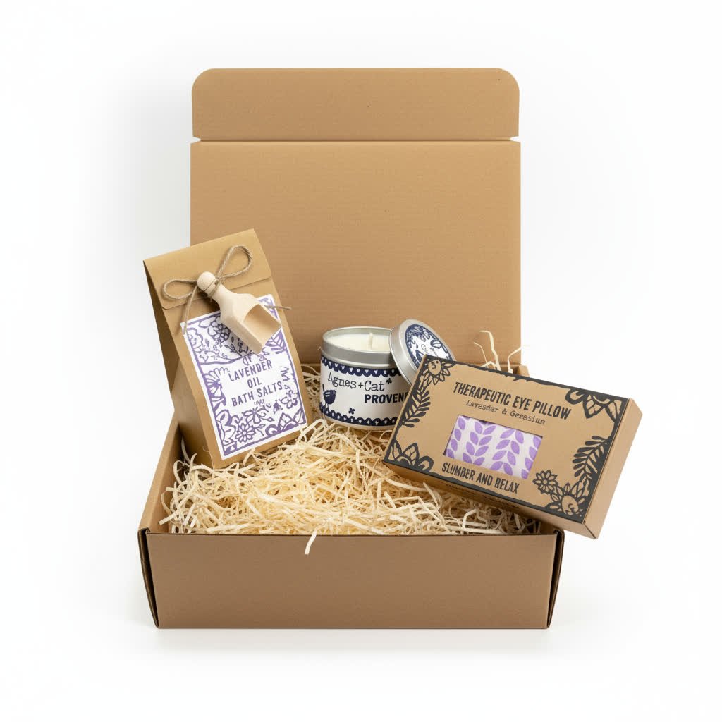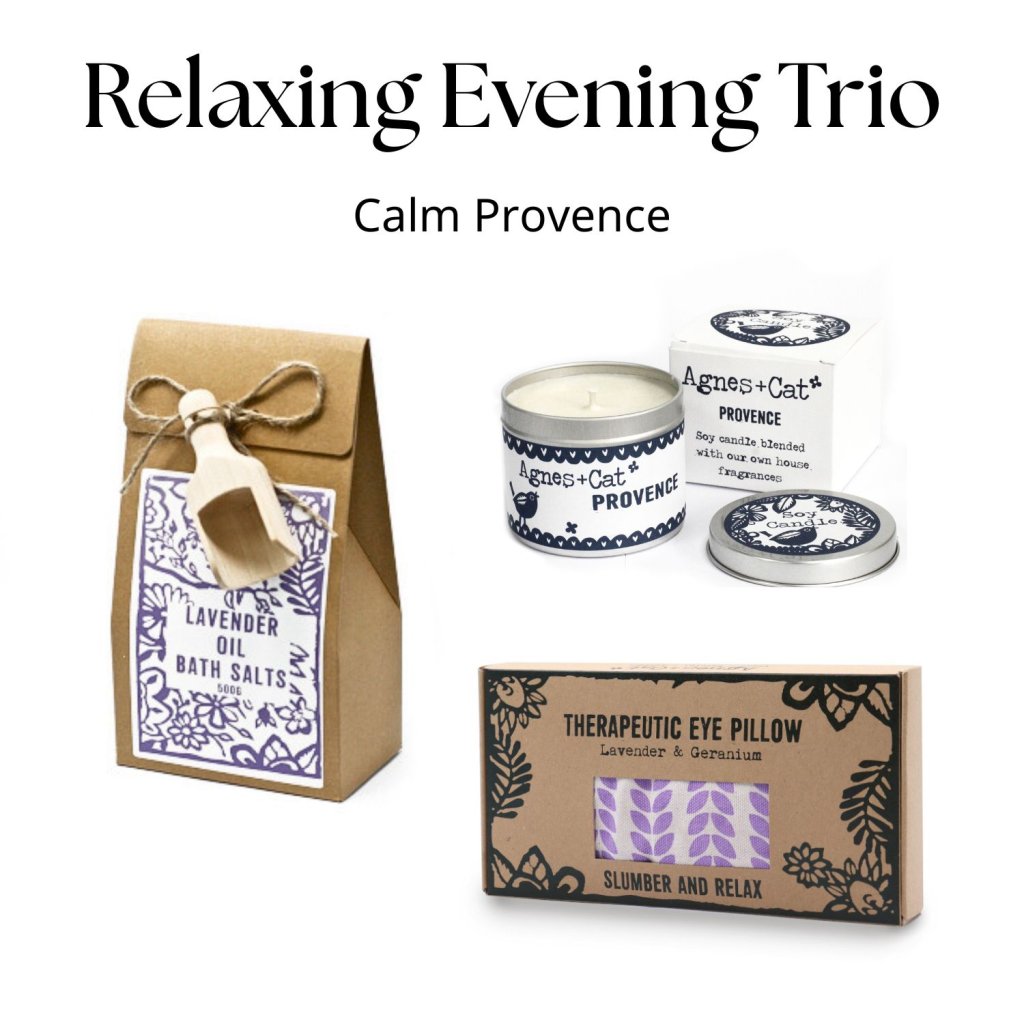 🪻 Calm Provence: Levandulová koupelová sůl + Provence svíčka + Slumber & Relax polštářek: Voňavá klasika pro hluboký klid – levandule, geranium a fialové tóny jako objetí na dobrou noc.
